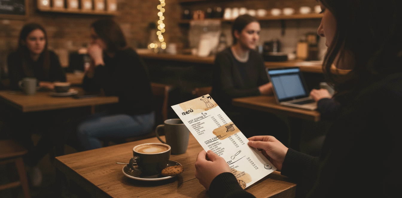 El diseño combina una tipografía contemporánea con detalles gráficos sutiles que aportan personalidad sin sobrecargar la pieza. Se trabajó también la organización del contenido para optimizar la comprensión rápida, un aspecto clave en entornos de restauración.